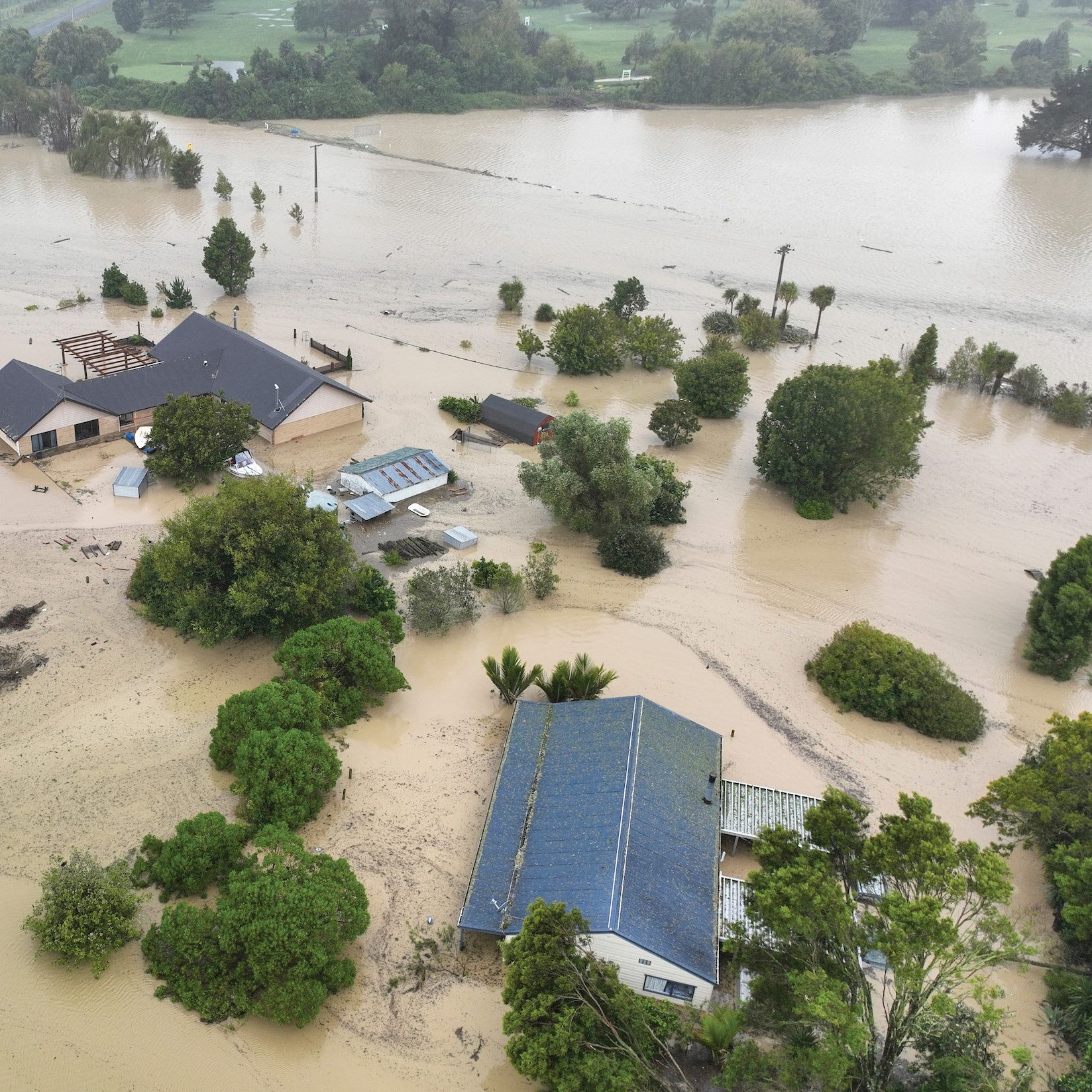 Micha Johansen took precautions as the Tukituki River spilled across the paddocks.