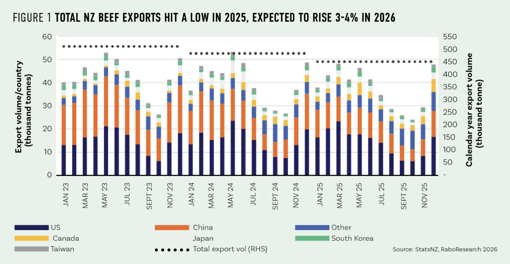 New Zealand beef farmers head into 2026 farming in a world that is volatile geopolitically, but RaboResearch Animal Proteins Analyst, Jen Corkran, suggests that the fundamentals of trade are still strong.
