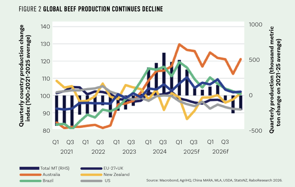 The latest 2026 Q1 RaboResearch Global Beef Quarterly points to an extended period of tight global supply and robust demand – especially for the kind of product New Zealand does best: high-quality trim and manufacturing beef.