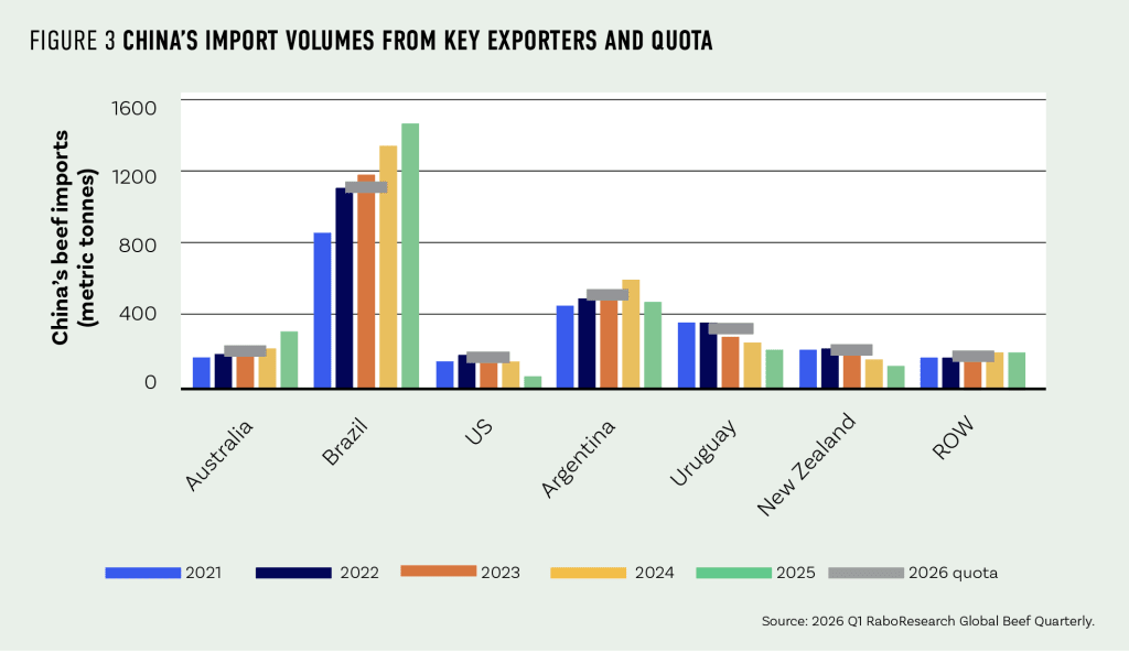 If the US is the primary demand engine, China’s new beef import quota system is the big structural shift reshaping trade flows.